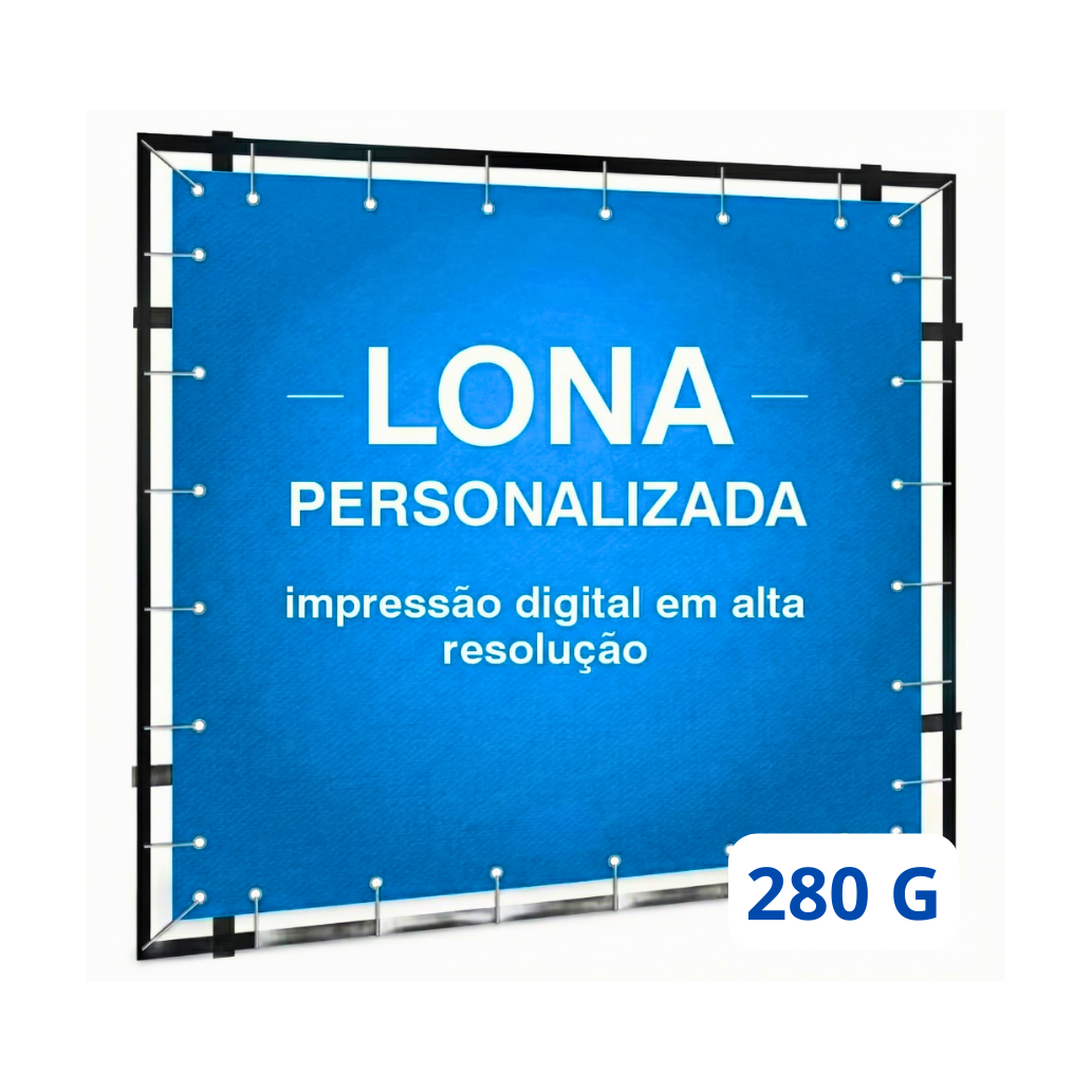 Lona prática e resistente com acabamento em bainha e ilhós para fácil instalação. Material Lona Brilho 280g com impressão solvente de alta qualidade, ideal para eventos, promoções e sinalização rápida e durável.